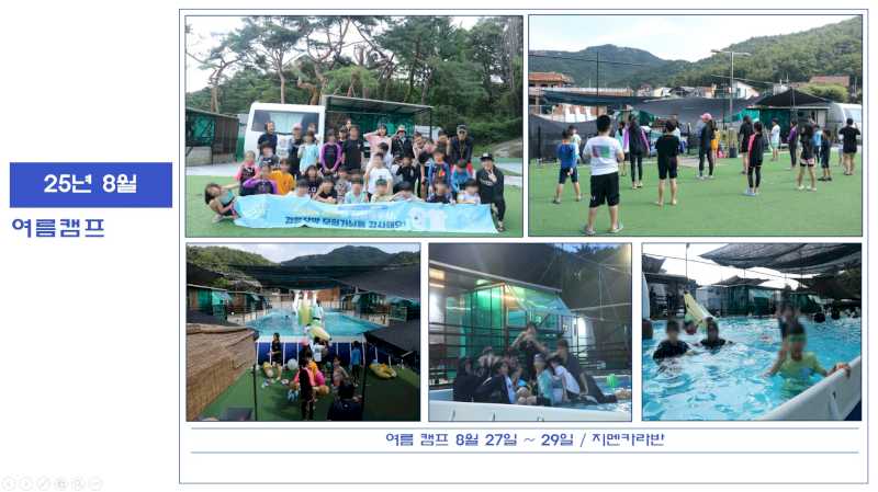 처음으로 경험하는 카라반에서 시원한 물놀이와 체육활동을 통해 아이들이 단합되고 즐거운 시간을 보냈습니다.