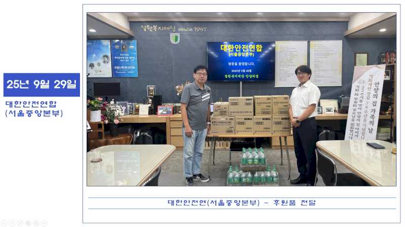 25년 9월 29일 대한안전연합(서울중앙본부) 후원품 전달