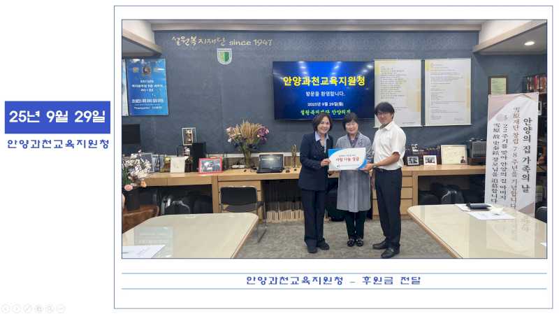 25년 9월 29일 안양과천교육지원청 후원금 전달, 9월 일정공지
