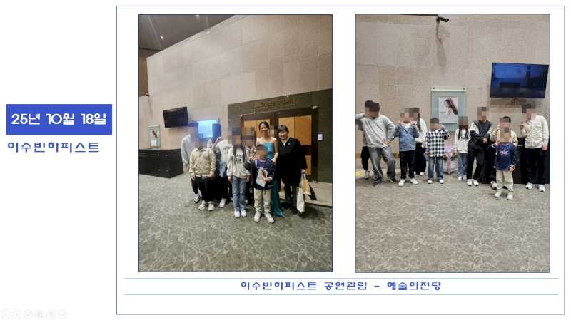 이수빈님이 이번 공연에 직접 초청해주셔서 아이들이 좋은 시간을 가질 수 있었습니다.