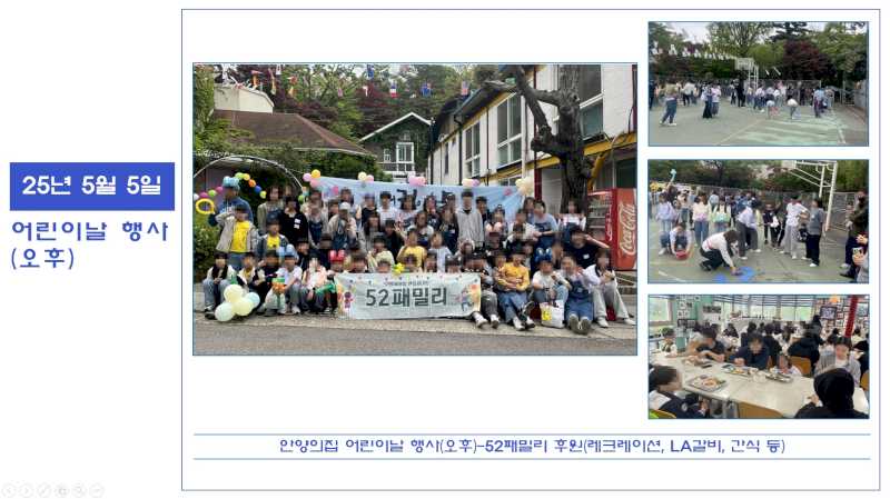 안양의집 아동과 직원 및 자원봉사자분들 모두 즐거운 시간을 보낼 수 있었습니다.
