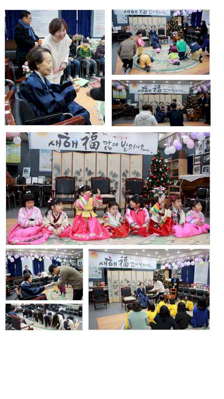 매년 새해에 한복을 예쁘게 차려입고 세배행사를 합니다.